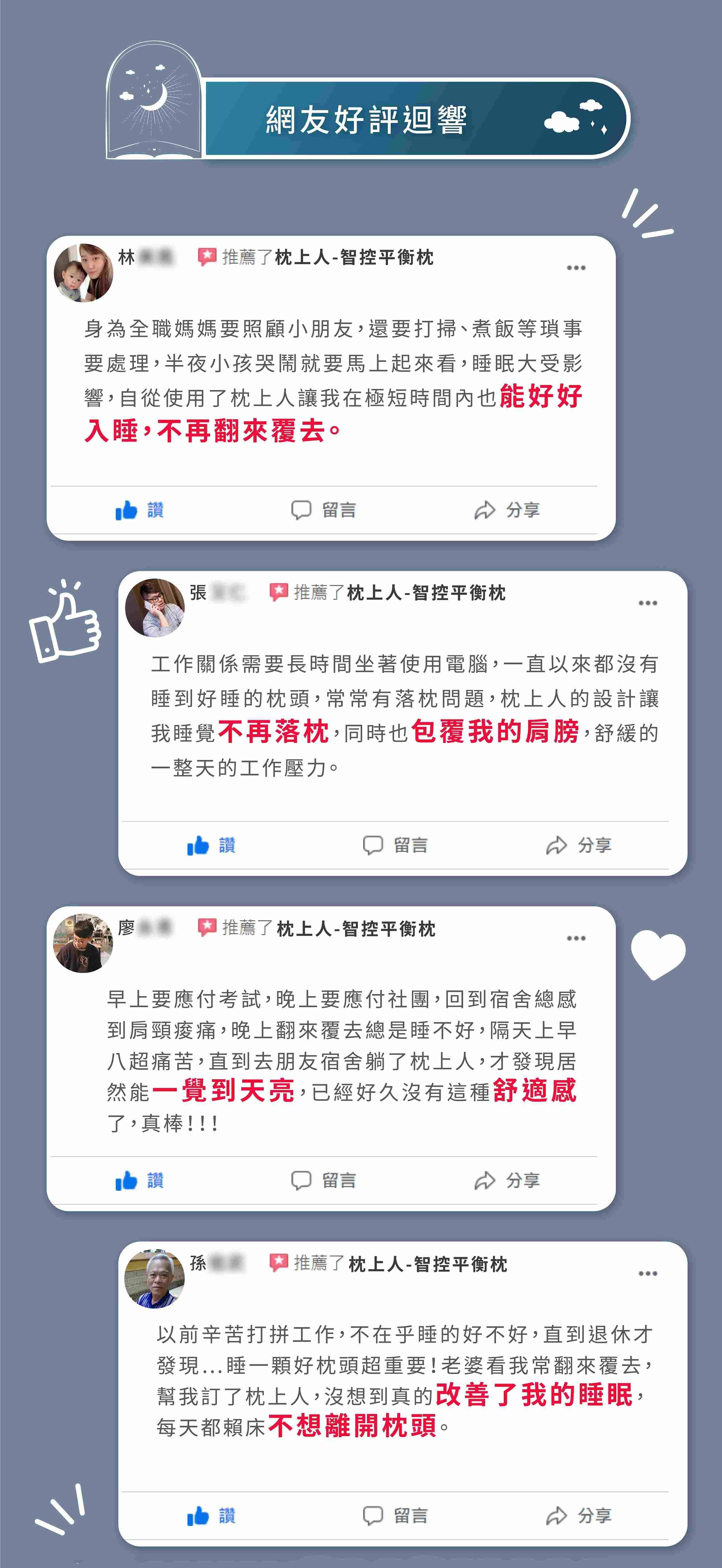 每個人都有不同的體型、睡眠環境和情緒因素影響睡眠品質。枕上人可以輕鬆快速調節枕頭的高度軟硬度,享受訂制般的睡眠體驗。