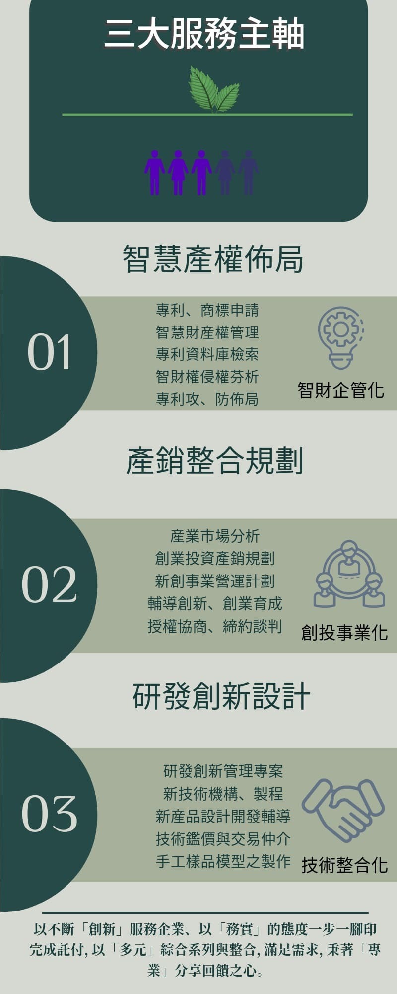 我們能幫助新創業、技術者育成「事業化」 的唯一民間創業育成中心。 擔任「企業界」與「發明人」和新事業、新產品策略聯盟雙向所需結締之整合工作,如找新產品、賣專利、做行銷、投資合作、技術移轉等有關各種「策略聯盟」的結合,藉以透過各社團的活動、發表、交 流、推介等,協助您借力使力。